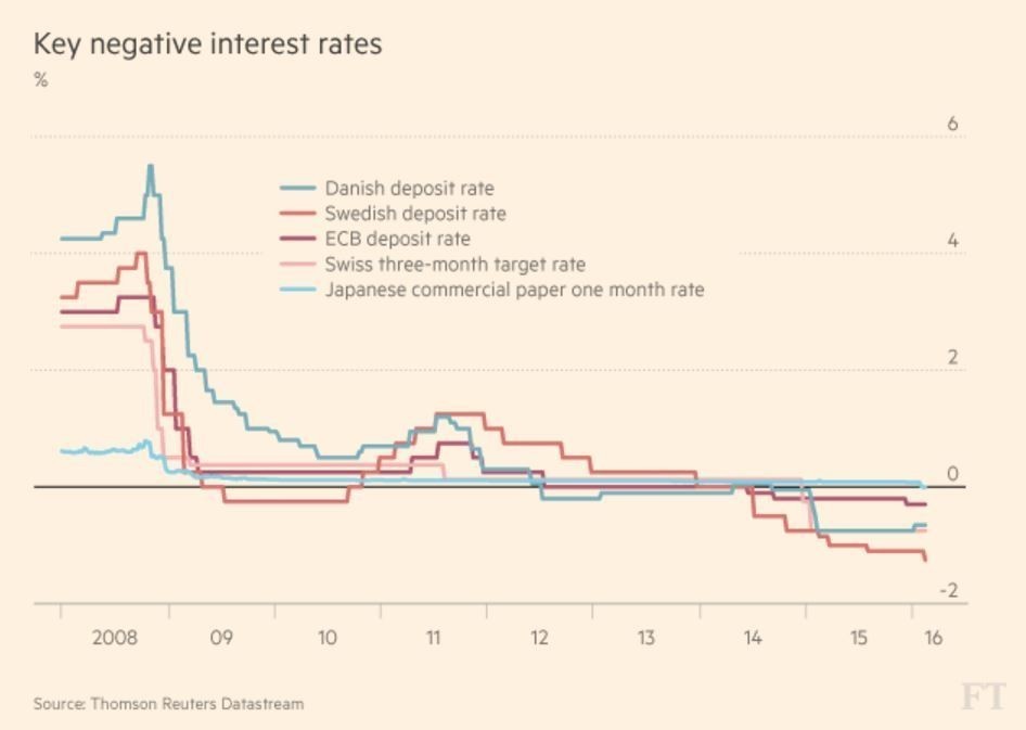 Европын төв банк хадгаламжийн хүүг -0.4 хувьд хүргэлээ. Япон, Швейцар болон хэд хэдэн Европын орнууд хүүний түвшингээ 0 хувиас бууруулаад байна.